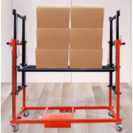 We use it for installing signs and displays. The precise height control lets us position everything exactly where needed, and the wheels move smoothly on different surfaces.